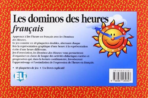 Juego de dominó en el que cada carta tiene la imagen de un reloj con la hora en un lado y en el otro mientras escribe.