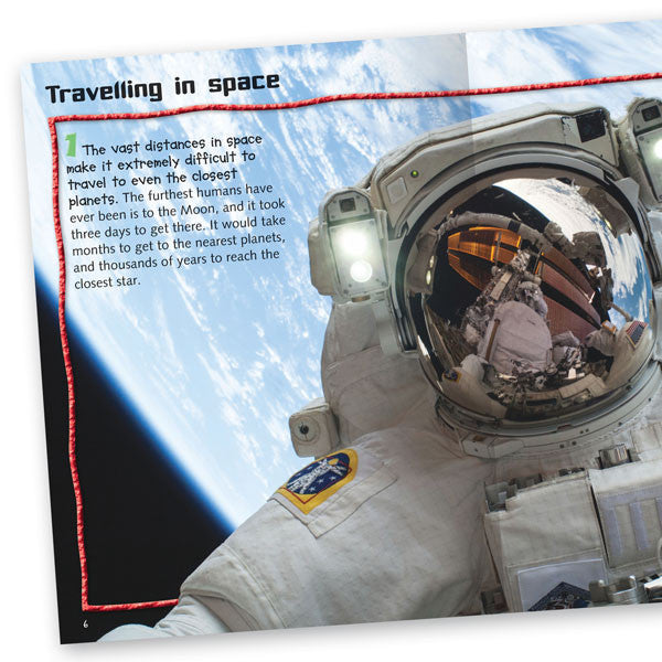 100 Facts Space Travel está repleto de datos fantásticos, imágenes increíbles y actividades divertidas sobre el apasionante mundo de los viajes espaciales.