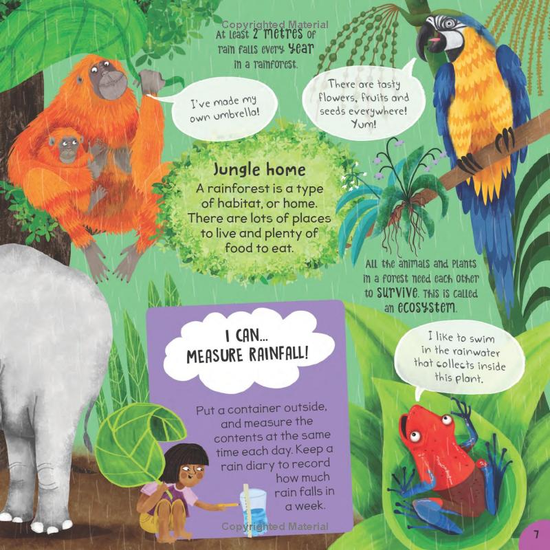 Los niños pueden emprender una emocionante expedición a la selva tropical con la ayuda de impresionantes obras de arte contemporáneas y un texto simple y atractivo. Descubra qué animales se balancean en las copas de los árboles, qué acecha en el río y por qué las selvas tropicales están en peligro. Se destacan hechos extra divertidos y una actividad práctica en cada tirada fomenta la interacción del lector. También se incluye un póster de pared de capas de selva tropical que ayuda a los niños a aprender sobre los cuatro niveles de una selva tropical y lo que sucede en cada uno.