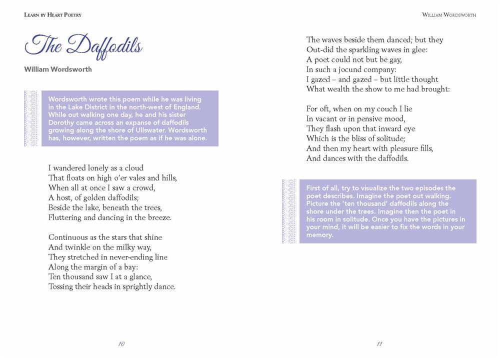 Se trata de una antología de poemas para leer, disfrutar y aprender (y por tanto disfrutar aún más). Combina una selección de la mejor poesía en inglés con técnicas para aprenderla de memoria. Este delicioso libro atraerá a una variedad de edades, incluidos los lectores mayores que desean redescubrir los placeres de aprender poesía y los lectores más jóvenes que lo intentan por primera vez. Los poetas incluyen a Blake, Burns, Dickinson, Keats, Shakespeare, Yeats, Whitman y muchos otros.